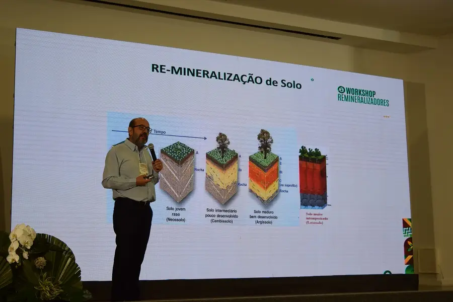Promovido pelo Grupo Associado de Agricultura Sustentável (GAAS) e pela Associação Brasileira dos Produtores de Remineralizadores de Solo e Fertilizantes Naturais (Abrefen) de 5 a 7 de dezembro na sede da Embrapa, em Brasília, o evento teve a participação de mais de 200 especialistas, produtores rurais, consultores e empresas do setor mineral brasileiro. O pesquisador destacou a produção científica sobre o tema, destacando que os remineralizadores são compreendidos pela Agrogeologia, ciência que a partir da criação do conceito de Pedologia (ramo da Ciência do Solo), em 1945, concentrou-se no estudo do uso de rochas na agricultura. Nos anos 2000, foram iniciados os estudos em Agrogeologia Tropical.