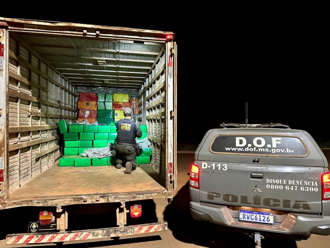Policiais militares do DOF (Departamento de Operações de Fronteira) recuperaram na noite desta quinta-feira (2) um caminhão VW8.150E Delivery branco carregado com 4.161 quilos de drogas. Na ação, ninguém foi preso.