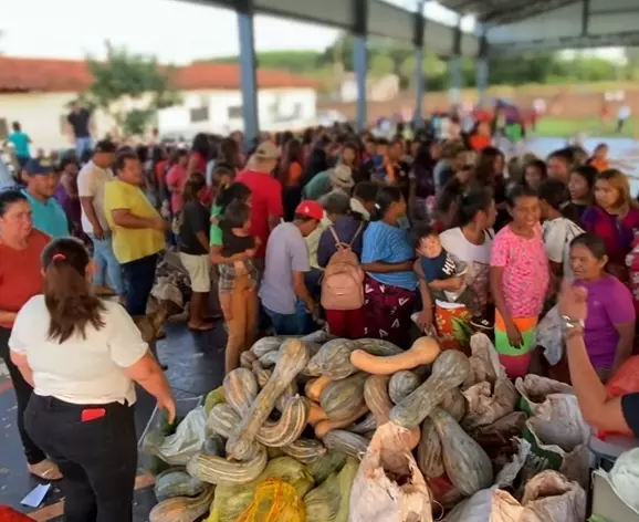 “É uma satisfação estar fazendo essa entrega de alimentos, através desse programa que beneficia também a compra de verduras e legumes dos agricultores da agricultura familiar (Cesta Verde) cadastrados no programa, beneficiando assim também a comunidade indígena”, disse a prefeita.