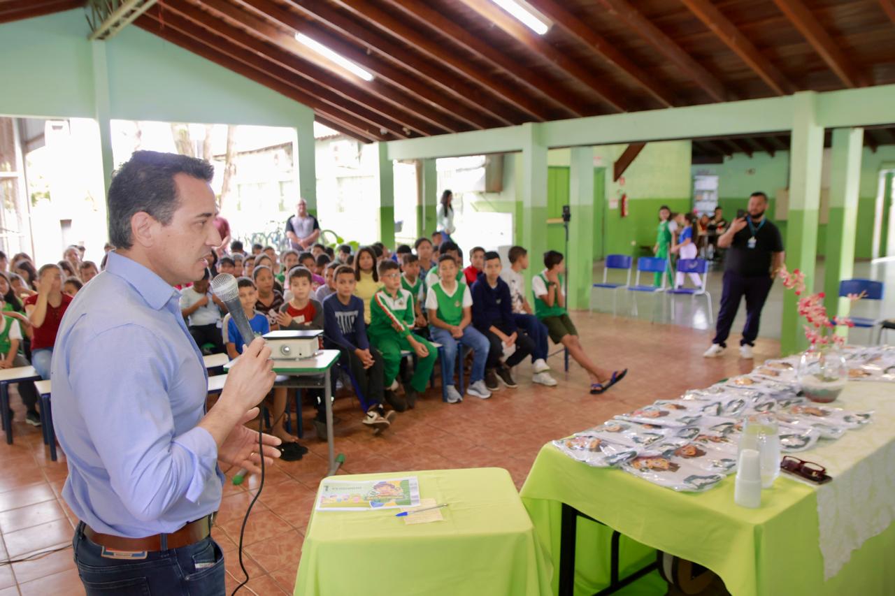 A Prefeitura de Naviraí, por meio da gestão Compromisso com o Futuro, deu mais um importante passo no fortalecimento da educação ambiental, financeira e nutricional nas escolas municipais. Nesta manhã, o Projeto Verdinho realizou a entrega oficial de camisetas e cartões “Verdinho” a 390 crianças das escolas Milton Dias Porto e José Carlos da Silva.