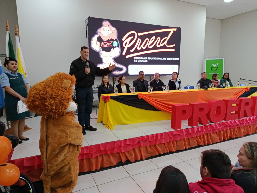 Além da entrega de certificados e da execução da canção oficial do PROERD, houve homenagens aos “Amigos do PROERD”, reconhecendo o apoio fundamental de pessoas que contribuíram para o sucesso do programa no município.
