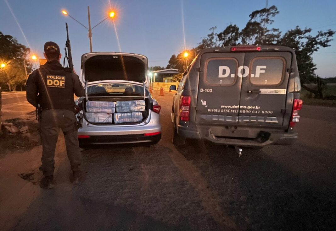 Policiais militares do DOF (Departamento de Operações de Fronteira) apreenderam neste sábado (16), em Naviraí, mais de 200 quilos de maconha, que eram transportados em um veículo Fiat Cronos. Na ação, um homem de 30 anos foi preso em flagrante.