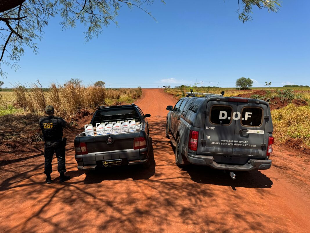 Policiais militares do DOF (Departamento de Operações de Fronteira) apreenderam, na tarde desta quarta-feira (24), um veículo Fiat Strada carregado com defensivos agrícolas contrabandeados do Paraguai. A ação ocorreu na Aldeia Lima Campo, em Ponta Porã, e resultou na prisão em flagrante de um homem de 25 anos.