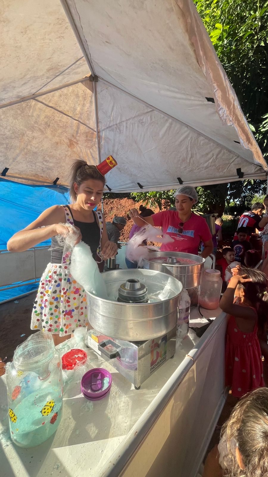 A programação contou com picolé, pirulito, balas, pipoca, algodão-doce, geladinho, brinquedos e muitas brincadeiras, entre elas pula corda, morto-vivo e corrida do saco. Até os adultos entraram na diversão e participaram das atividades.
