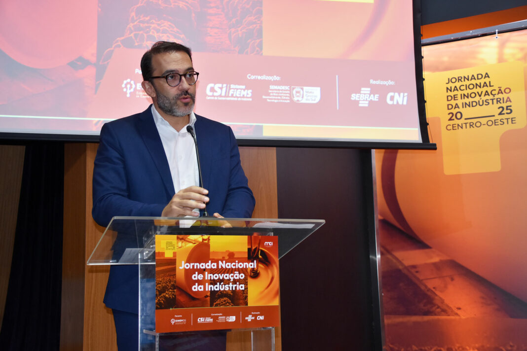 Ao abrir a etapa estadual da Jornada Nacional de Inovação da Indústria, nesta quinta-feira (23/10), o diretor de sustentabilidade da Fiems, Robson Del Casale destacou a presença de empresários no evento para fomentar o uso da inovação no dia a dia das empresas. O evento, realizado no Edifício Casa da Indústria, em Campo Grande, teve como objetivo promover diálogos e experiências inspiradoras em todo o país nas áreas da transição ecológica e digital da sustentabilidade dos negócios.