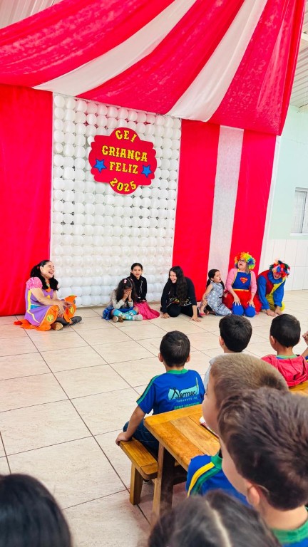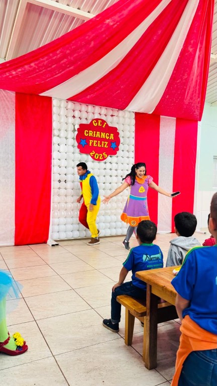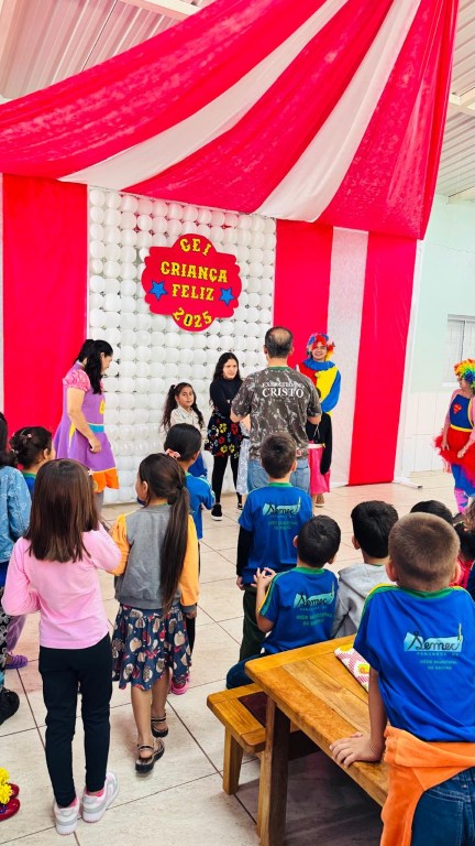Na quarta-feira, 22 de outubro de 2025, o CEI Criança Feliz teve a alegria de receber novamente a Turma da Alegria, grupo que trouxe muita animação, sorrisos e a Palavra de Deus para as crianças.
