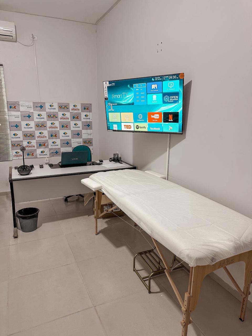 A sala conta com equipamentos novos e adequados, como maca, smart TV, webcam com microfones e alto-falantes, além de notebook de última geração, que asseguram melhor comunicação e precisão durante as consultas.