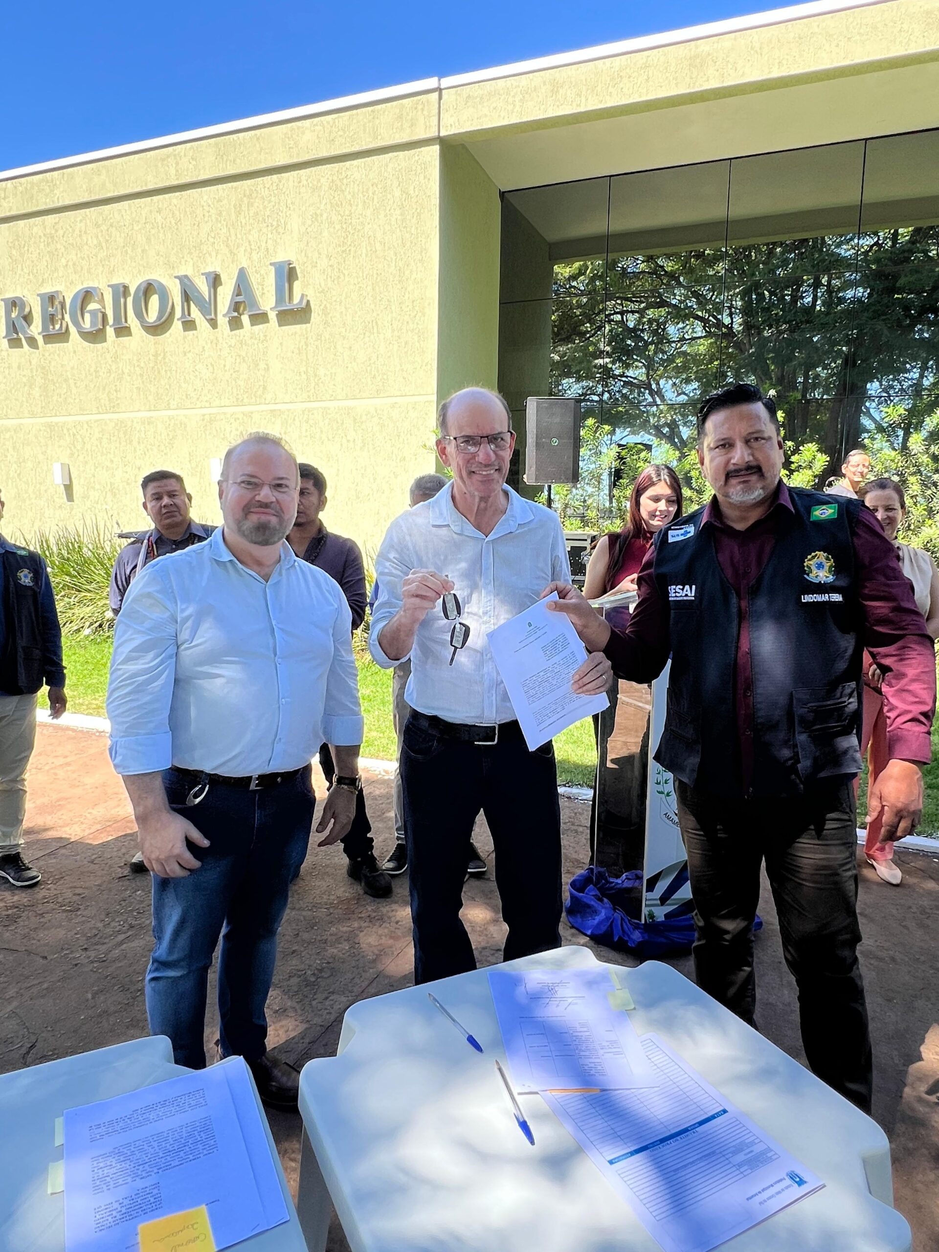Dourados recebeu o veículo diretamente das mãos de Lindomar, entregue ao secretário municipal de Saúde, Márcio Grei Alves Vidal de Figueiredo, que representou o prefeito e reforçou a importância do equipamento para ampliar o suporte às aldeias atendidas pelo município.
