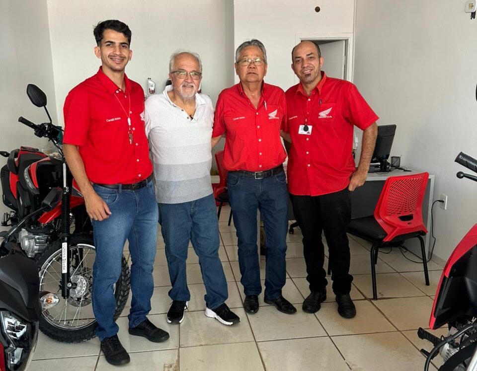 A nova loja Canaã Motos Honda foi inaugurada em Iguatemi e já se destaca por oferecer facilidade, qualidade e ótimas condições para quem deseja realizar o sonho da moto zero quilômetro. Representando a administração municipal, o prefeito Dr. Lídio Ledesma participou da inauguração e foi recebido pela equipe da empresa, formada pelo diretor Milton Nakassugui, pelo gerente administrativo Jevenil C. Prado e pelo consultor de vendas Erick Barbosa.