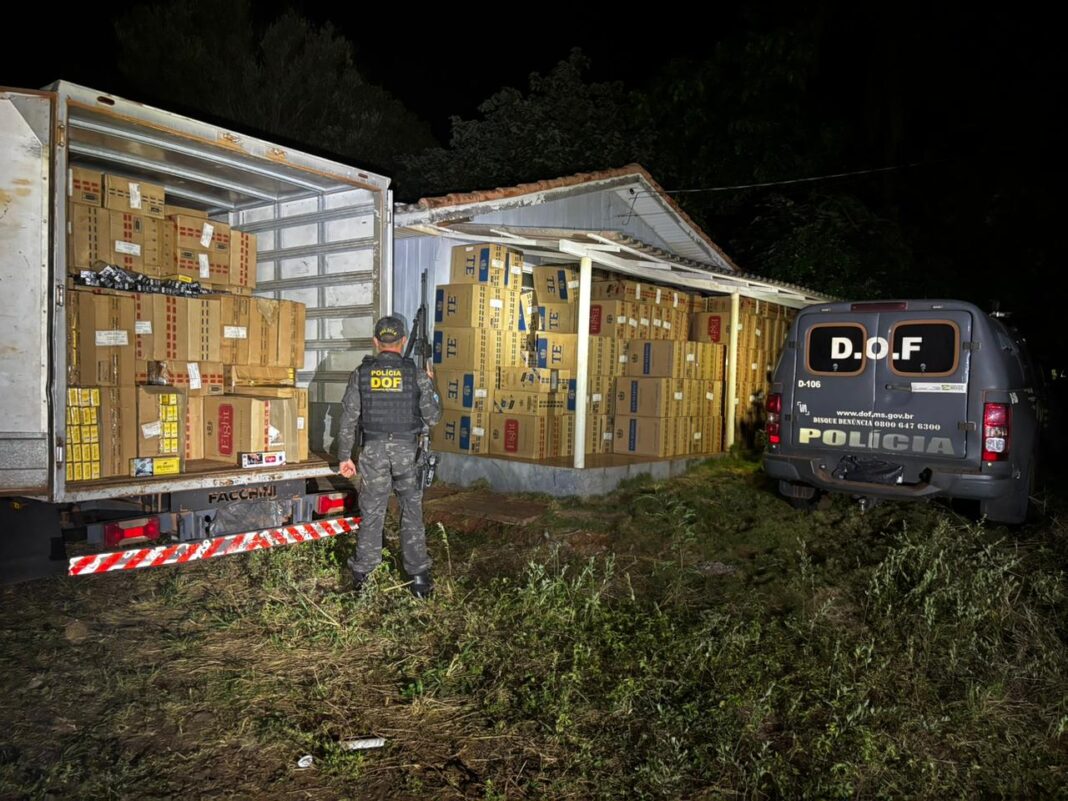 Policiais militares do DOF (Departamento de Operações de Fronteira) apreenderam, na noite deste domingo (30), em Mundo Novo, 70 mil pacotes de cigarros contrabandeados do Paraguai. Os produtos estavam armazenados no interior de uma residência e em um caminhão-baú Iveco, roubado no Estado de Minas Gerais.