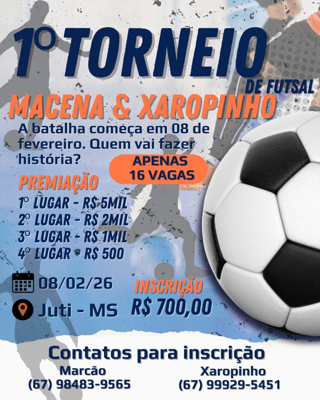 Juti será palco do 1º Torneio de Futsal Macena & Xaropinho, marcado para o dia 8 de fevereiro de 2026, promete entrar para a história ao oferecer a maior premiação em dinheiro já paga em um torneio de futsal no município.