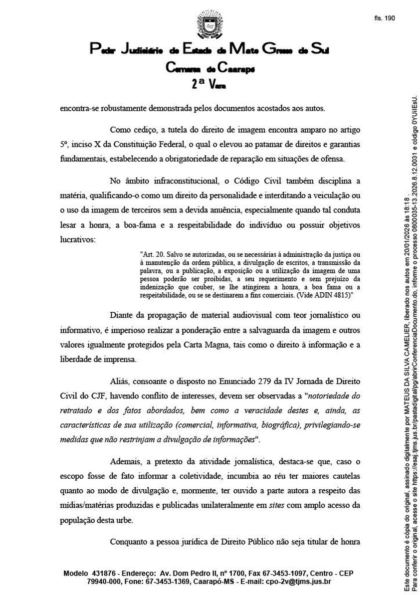 Além da concessão da tutela de urgência, o juiz determinou a citação da Caaraponews Publicidade Ltda, que passa oficialmente à condição de ré no processo e deverá apresentar contestação no prazo legal, sob pena de revelia.