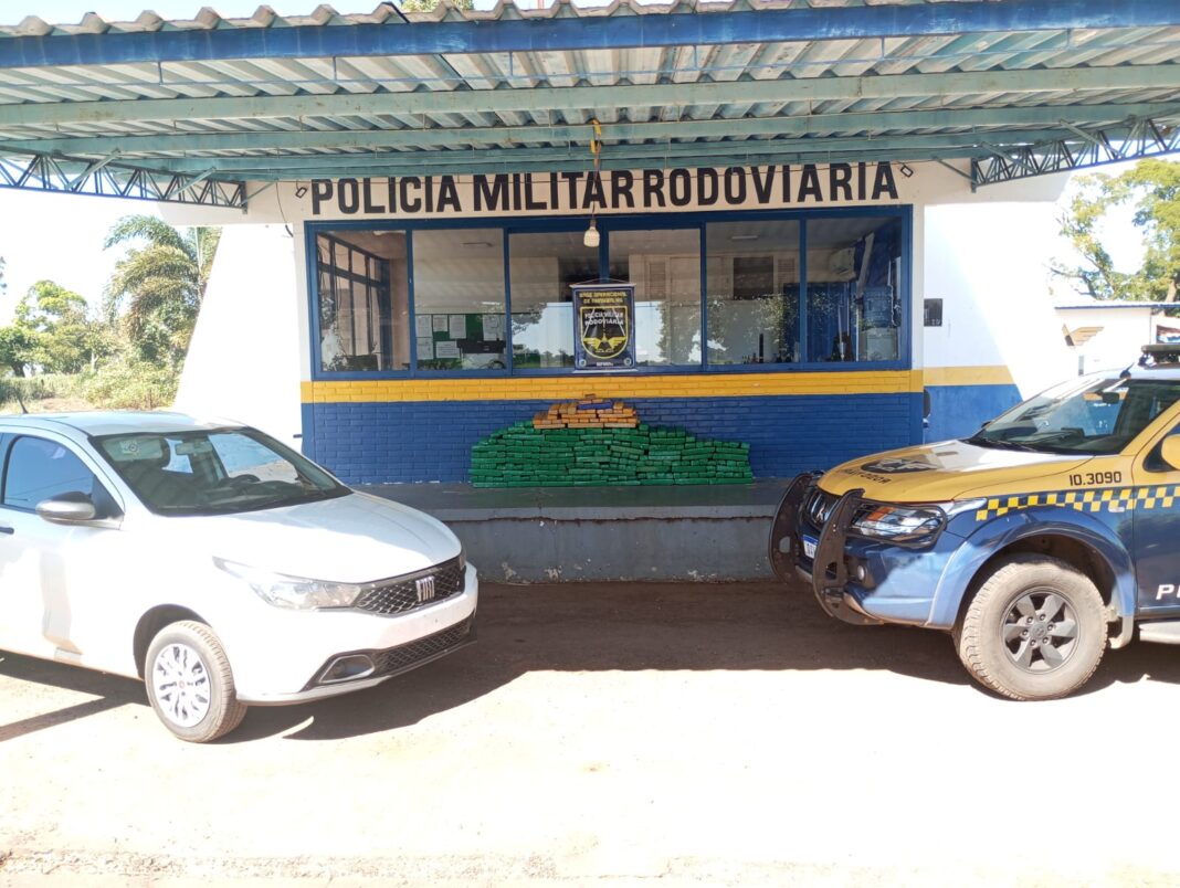 Durante a busca, foi localizada grande quantidade de entorpecente acondicionada a granel no porta-malas e no interior do veículo, atrás dos bancos. Após a retirada e contagem do material, foram apreendidos 249 tabletes, totalizando aproximadamente 250 quilos de maconha.