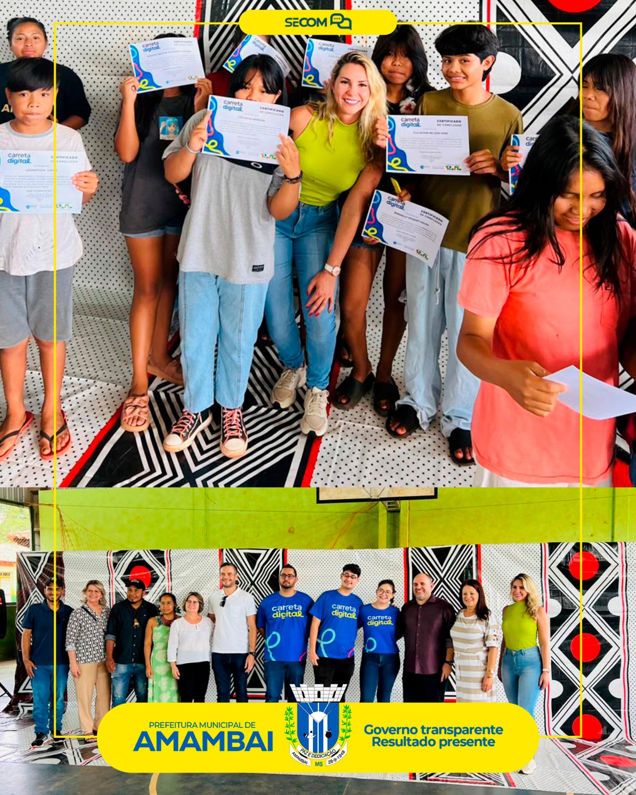 Com a certificação dos 163 alunos, a Carreta Digital conclui mais um ciclo de formação em território indígena, consolidando a tecnologia como ferramenta de inclusão social, desenvolvimento local e ampliação de oportunidades para a juventude da Aldeia Amambai.
