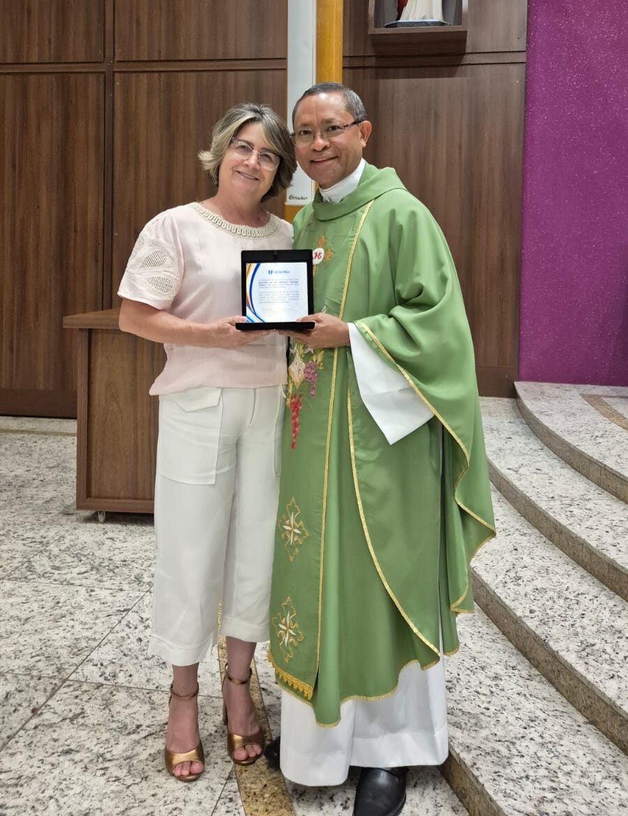 O ato simbólico aconteceu pouco antes da partida do sacerdote, que está deixando o município para seguir uma nova missão religiosa. A homenagem foi entregue pela secretária municipal de Educação, Rosemeire de Medeiros Charão Barizon, que representou oficialmente a Prefeitura de Amambai no momento.