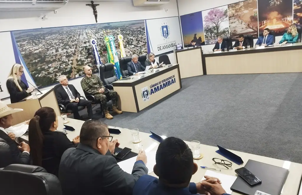 Na sessão, que iniciou às 8h da manhã no Plenário Lourino de Jesus Albuquerque, contou com presença de autoridades e representantes de segmentos da sociedade amambaiense, entre elas o vice-prefeito e atual prefeito em exercício, em Amambai, Jaime Vizzotto (PP), o comandante do 17º RC Mec (Regimento de Cavalaria Mecanizado) unidade do Exército Brasileiro, com sede em Amambai, coronel Pedro Augusto Porto, Eder Espíndola, coordenador político regional da Casa Civil do Governo do Estado, representante da Polícia Militar, da Sanesul e de secretários municipais em Amambai.