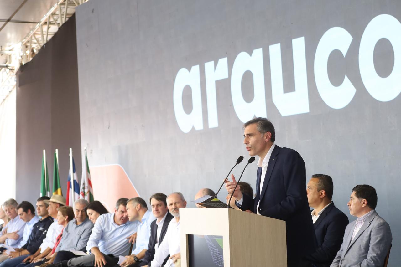 O investimento é parte de um projeto privado da Arauco que soma US$ 4,6 bilhões e tem como conceito a otimização de custos logísticos. O lançamento da pedra fundamental da ferrovia, assim como os demais empreendimentos autorizados pelo Governo do Estado, representam uma etapa estratégica para a Arauco e para o desenvolvimento econômico e sustentável local.