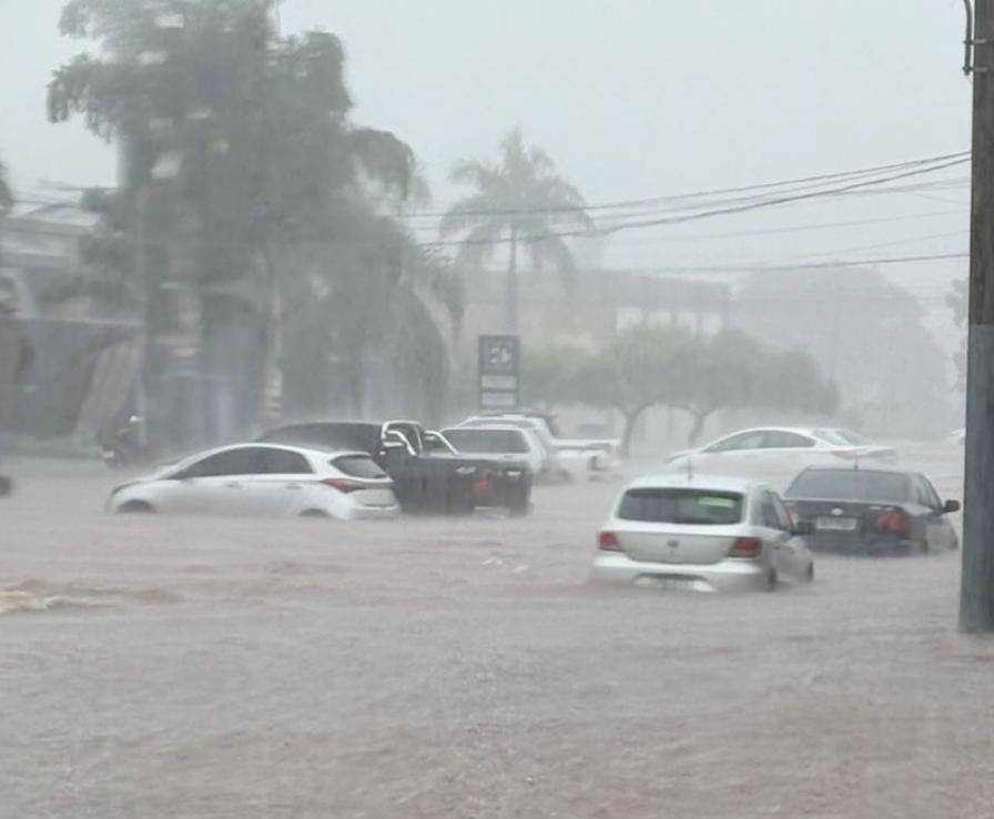 Uma chuva torrencial de aproximadamente 100 milímetros que caiu no decorrer dessa sexta-feira, 13 de fevereiro, sendo 62,2 milímetros em apenas uma hora, segundo a Defesa Civil estadual, alagou ruas, estabelecimentos comerciais, residência e provocou diversos danos, em Amambai.