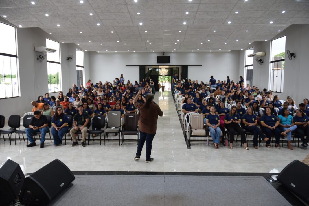 Nesta sexta-feira, 13 de fevereiro, professores e servidores da Rede Municipal de Ensino estão participando de formação promovida pela Secretaria Municipal de Educação. O evento está sendo realizado no templo da Igreja Assembleia de Deus Belém e teve início às 8h. O professor Robson Luiz R. de Lima será o responsável por ministrar a palestra. Estiveram presentes a secretária municipal de Educação, Rosângela Socovoski, os vereadores Jesus Milane de Santana (presidente da Câmara) e Agnaldo dos Santos.
