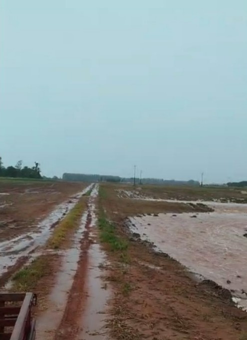 Na zona rural, o volume concentrado provocou alagamentos em áreas produtivas, erosões com rompimento de curvas de nível, danos em lavouras recém-implantadas, especialmente de milho, além de prejuízos em estradas vicinais.
