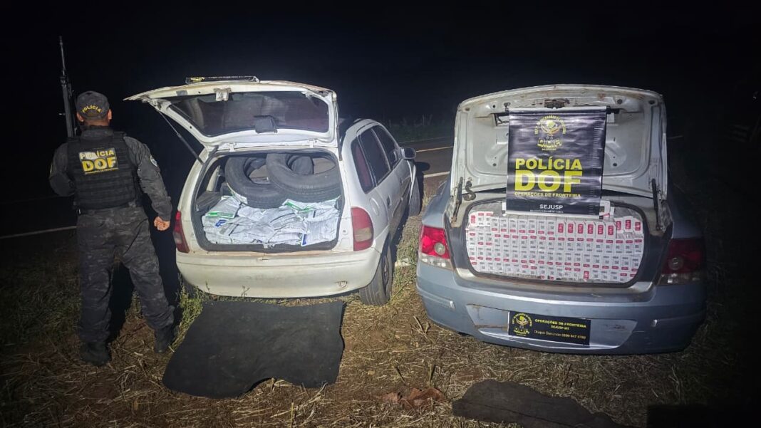 Policiais militares do DOF (Departamento de Operações de Fronteira) apreenderam, nesta terça-feira (3), em Ponta Porã, dois veículos carregados com 300 quilos de agrotóxicos, 1.500 pacotes de cigarros e 16 pneus. Na ação, um homem de 23 anos foi preso em flagrante.