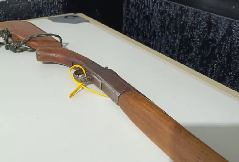 O suspeito reagiu e buscou uma espingarda calibre .36. De acordo com o depoimento inicial, no meio da confusão, a arma teria disparado acidentalmente. O projétil atingiu o ombro do amigo, que não estava envolvido na briga do casal.