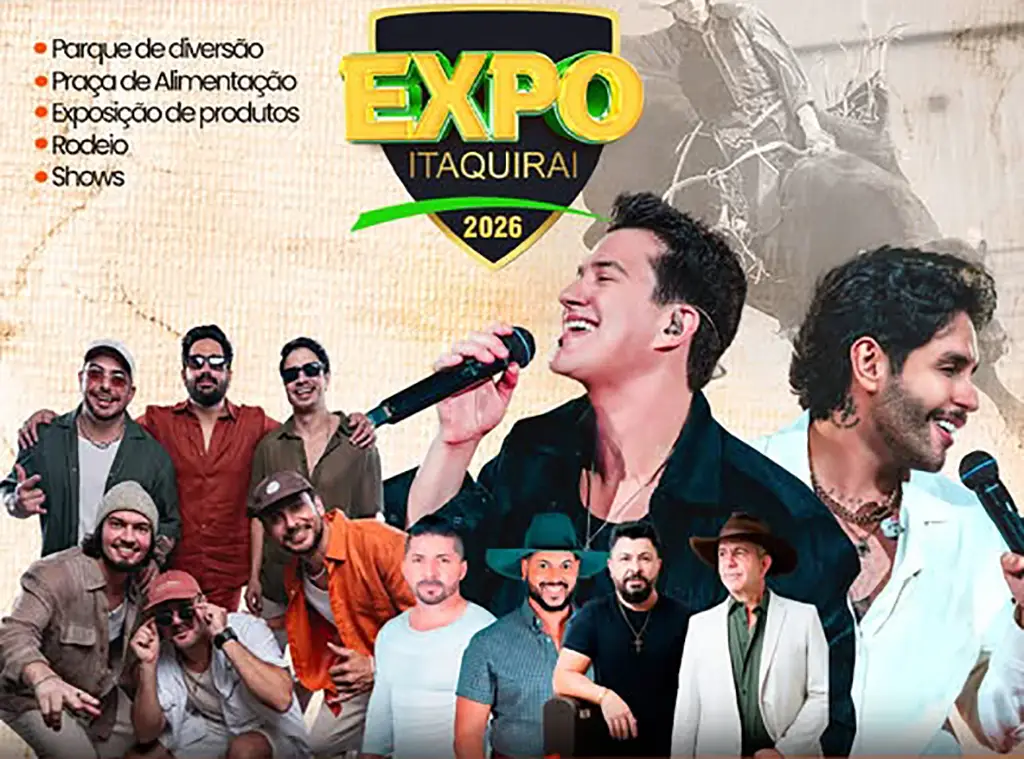 A ExpoItaquiraí 2026 será realizada entre os dias 15 e 17 de maio, reunindo rodeio, shows e diversas atrações para a população. O evento contará com parque de diversões, praça de alimentação, exposição de produtos e rodeio profissional, além de apresentações musicais durante os três dias de programação.