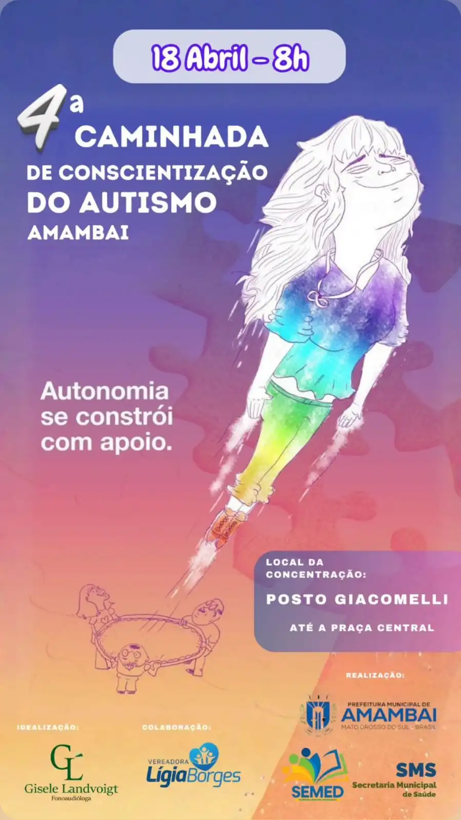 A caminhada é idealizada pela fonoaudióloga Gisele Landvoigt, com colaboração da vereadora Lígia Borges. A realização é da Prefeitura de Amambai, por meio da Secretaria Municipal de Educação (SEMED) e da Secretaria Municipal de Saúde (SMS).