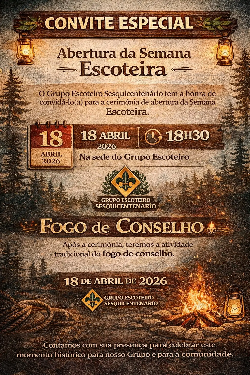 A organização destaca que será uma alegria contar com a presença da comunidade neste momento especial, que celebra o espírito escoteiro e a união entre seus membros e convidados.