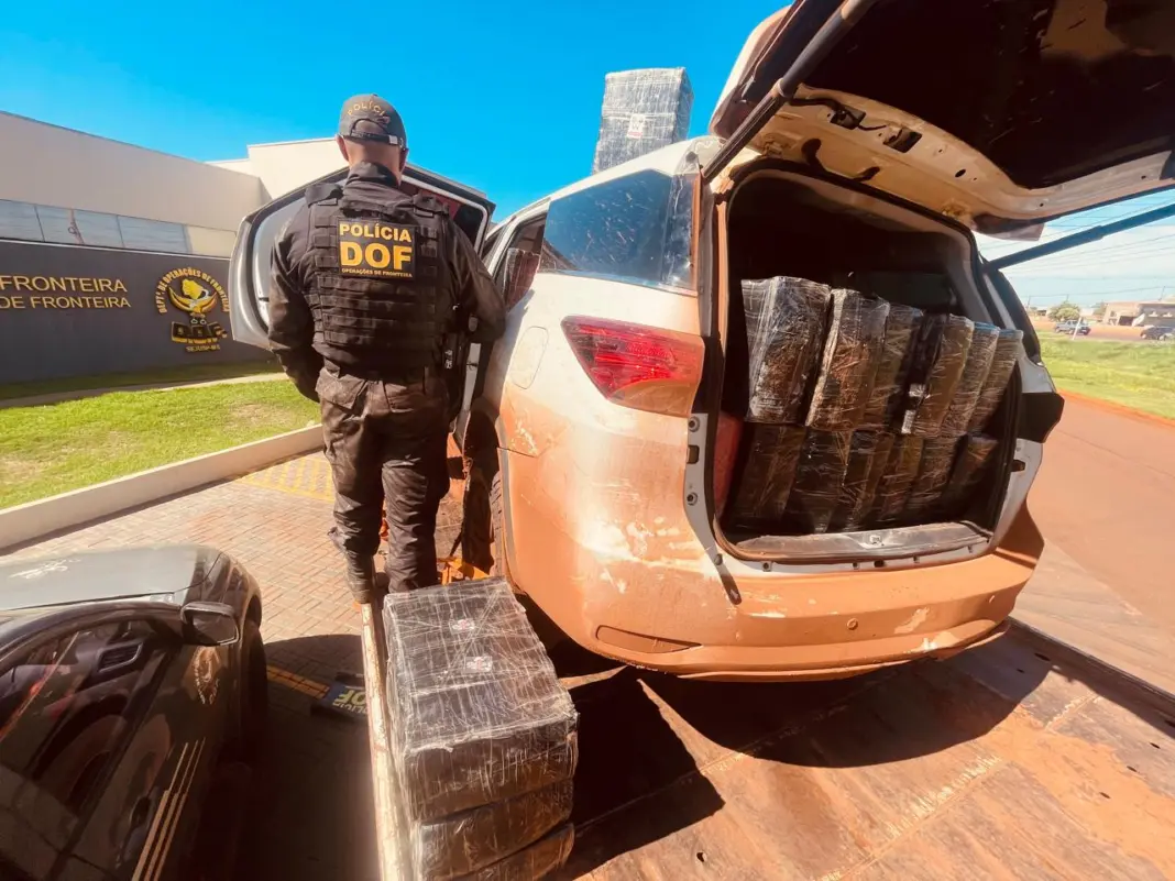Policiais militares do DOF (Departamento de Operações de Fronteira) apreenderam, nesta quarta-feira (22), em Sete Quedas, 1.900 quilos de maconha que eram transportados em uma Toyota SW4, roubada no Estado de Santa Catarina. Na ação, ninguém foi preso.