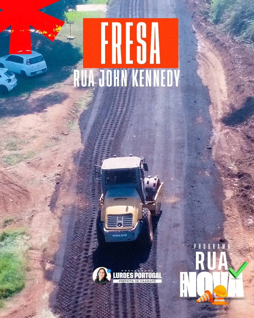 De acordo com informações publicadas nas redes sociais da prefeita, a extensão da Avenida John Kennedy recebeu recentemente serviços de fresa asfáltica, etapa que integra o programa Rua Nova. A intervenção prepara o local para melhorias no pavimento, com o objetivo de reduzir a poeira e proporcionar mais qualidade de vida aos moradores da região, além de beneficiar frequentadores do Clube União.