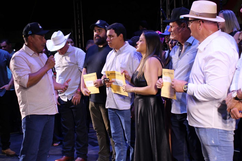 Um dos momentos mais marcantes da 5ª Expo Japorã Agrishow, festa comemorativa dos 34 anos de Japorã foi registrado na noite de sábado (25-04). O prefeito Vitor da Cunha Rosa (Malaquias) chamou ao palco os empresários que estarão investindo na abertura de empresas no município, e entregou as escrituras definitivas das áreas onde as agroindústrias serão instaladas.