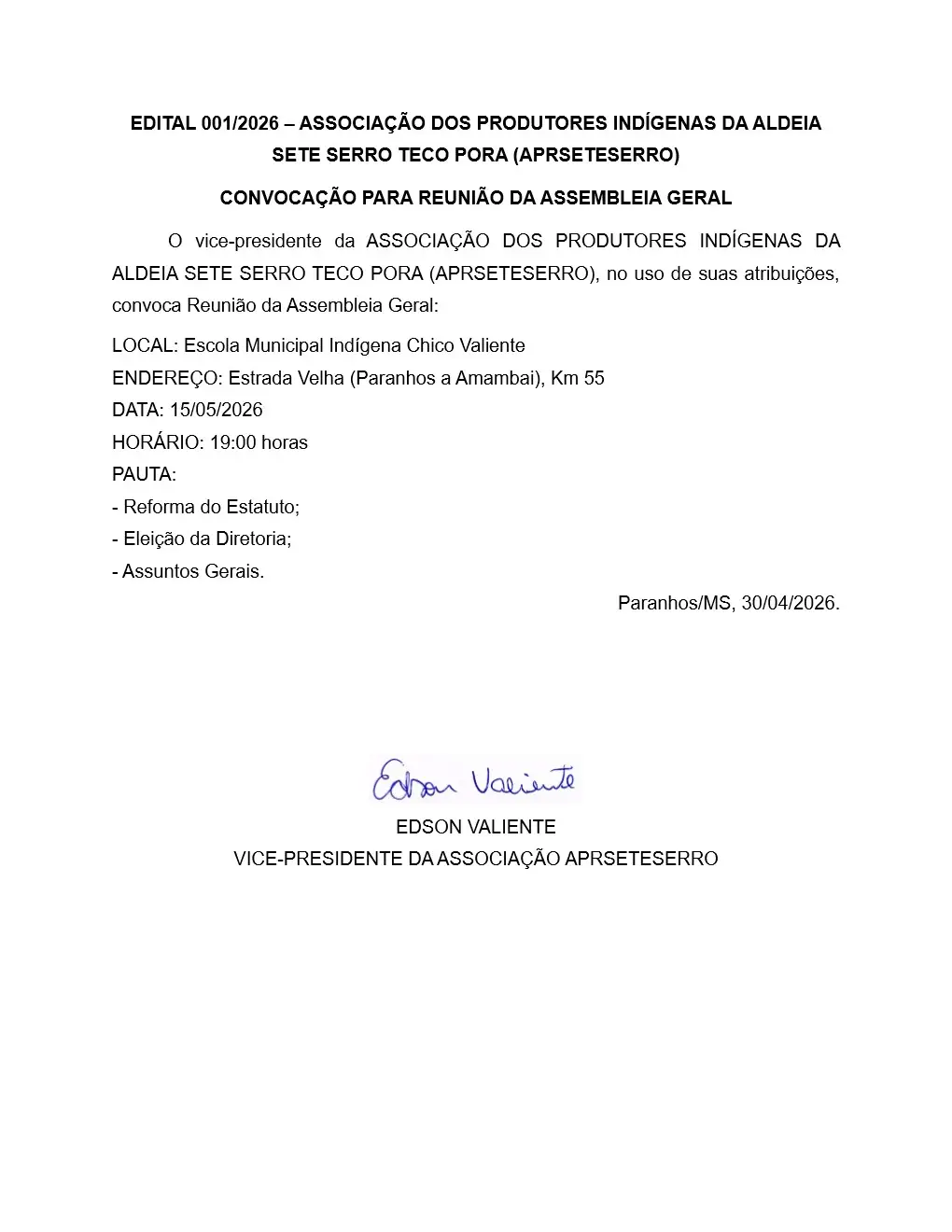Edital – Convocação para reunião de Assembleia Geral Por Redação 14:01 - 30/04/2026 Share FacebookTwitterPinterestWhatsApp Share FacebookTwitterPinterestWhatsApp Leia também Fiems promove encontro com BNDES para apresentar oportunidades de crédito à indústria 15:40 - 30/04/2026 ExpoItaquiraí 2026 terá três dias de shows, rodeio e diversas atrações em maio 15:19 - 30/04/2026 Prefeitura de Itaquiraí regulamenta ponto eletrônico e define novo horário de atendimento ao público 15:10 - 30/04/2026 Colheita da safra de soja 2025/2026 deve ser concluída em até 9 dias no Estado 15:05 - 30/04/2026 MS registra criação de 3,5 mil empregos formais em março e mantém saldo positivo no ano 15:03 - 30/04/2026 Grande final da 1ª Taça Trab será realizada nesta quinta-feira em Coronel Sapucaia 14:56 - 30/04/2026 Corpo de Bombeiros de Amambai participa de campanha “Seu Abraço Aquece” 14:51 - 30/04/2026 Nota de falecimento de Sebastião Ribeiro da Costa 14:51 - 30/04/2026 Coronel David destaca avanços após reunião com Riedel, com ampliação de vagas nos cursos e sinalização de reposição salarial para militares 14:49 - 30/04/2026 Edição Digital Edição Digital Jornal A Gazeta – Edição de 30 de abril de 2026 Clique aqui para acessar a edição digital do Jornal... Enquete