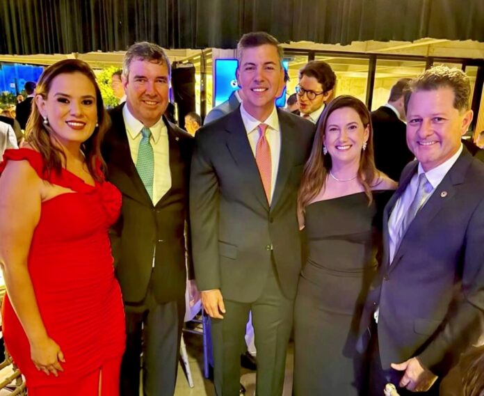 Proposto pelo presidente da Assembleia Legislativa, deputado Gerson Claro (PP) em coautoria com o 1º Secretário da Casa de Leis, deputado Paulo Corrêa (PSDB), o Título de Cidadão Sul-Mato-Grossense foi concedido, na noite desta quinta-feira (02), ao presidente do Paraguai, Santiago Peña, durante jantar de autoridades, em Campo Grande, oferecido pelo Governo do Estado.