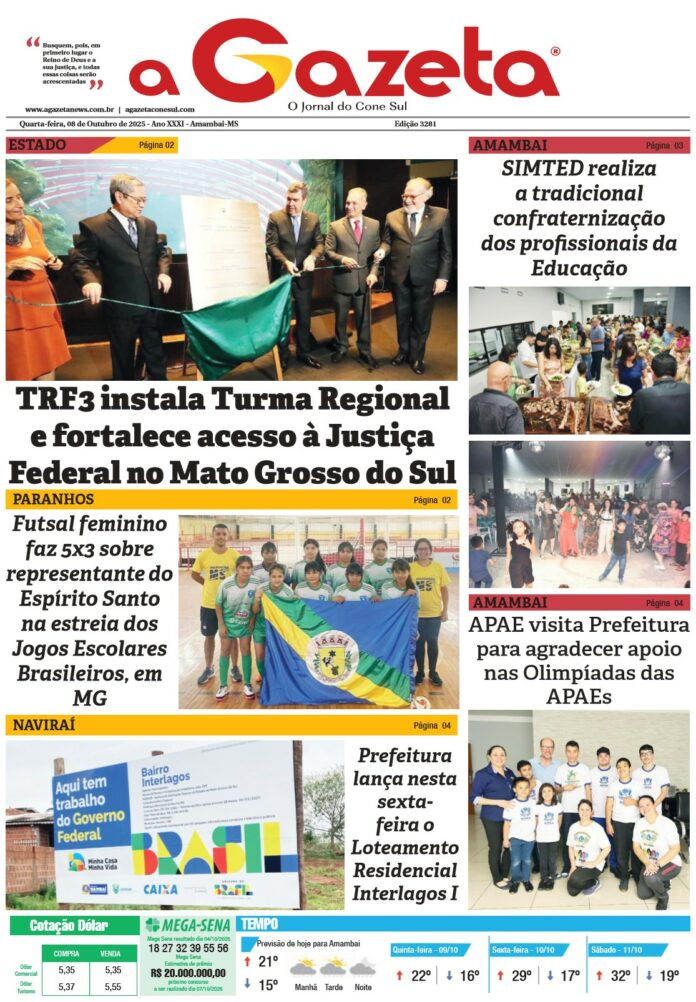 Fonte: Secom/Prefeitura de Amambai com informações da Agência Brasil