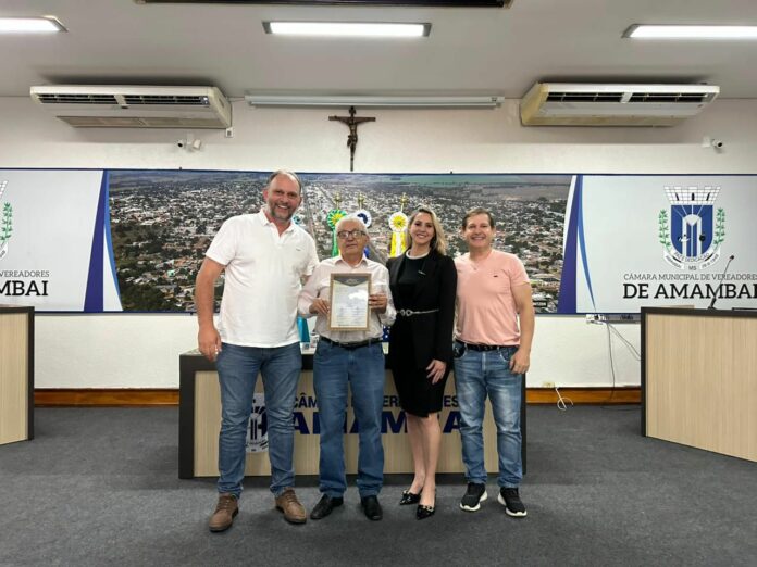 O reconhecimento foi concedido pelos relevantes serviços prestados à comunicação, à comunidade amambaiense e ao Estado, tanto no exercício da vereança quanto em sua trajetória como locutor e defensor dos valores cristãos, familiares e do homem do campo.