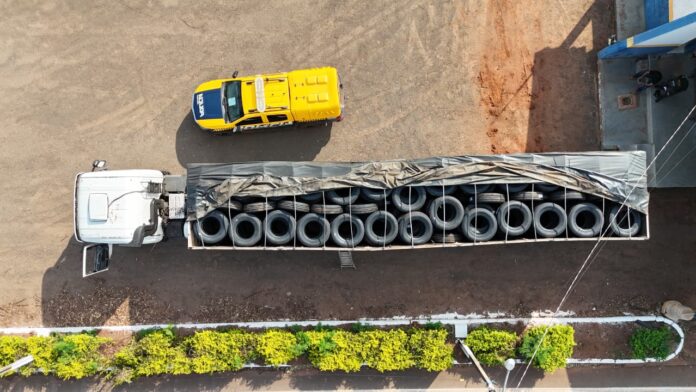 Na manhã de hoje (05), policiais militares do 4º Pelotão de Eldorado-MS repassaram informações à equipe da Base da Polícia Militar Rodoviária em Amambai-MS sobre um caminhão com semirreboque que estaria transportando grande quantidade de pneus de origem estrangeira.