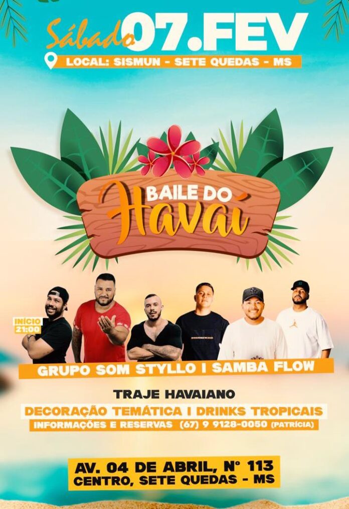 Acontece neste sábado, dia 7 de fevereiro, no salão de festa do SISMUN (Sindicato dos Servidores Municipais de Sete Quedas), em Sete Quedas, fronteira com o Paraguai, a edição 2026 do Baile do Havaí.