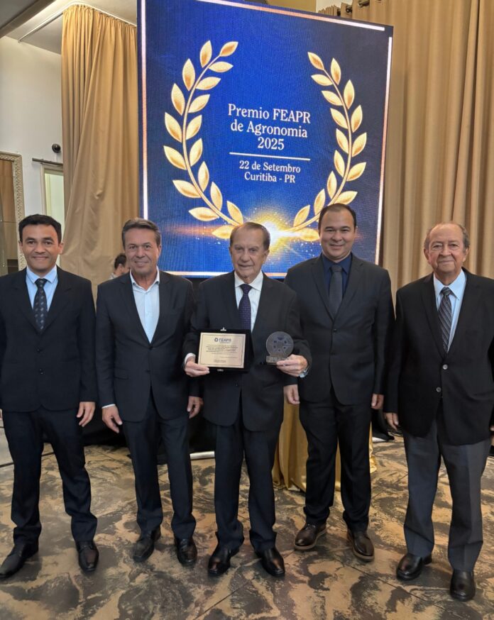 O engenheiro agrônomo José Aroldo Gallassini, idealizador e presidente do Conselho de Administração da Coamo foi homenageado com o prêmio FEAPR 2025 pela Federação dos Engenheiros Agrônomos do Paraná (FEAPR) na noite de 22 de setembro, em Curitiba. Gallassini recebeu a premiação do presidente da FEAPR – Cesar Veronese e do secretário estadual da Agricultura e Abastecimento, Marcio Nunes, pelos Relevantes Serviços.