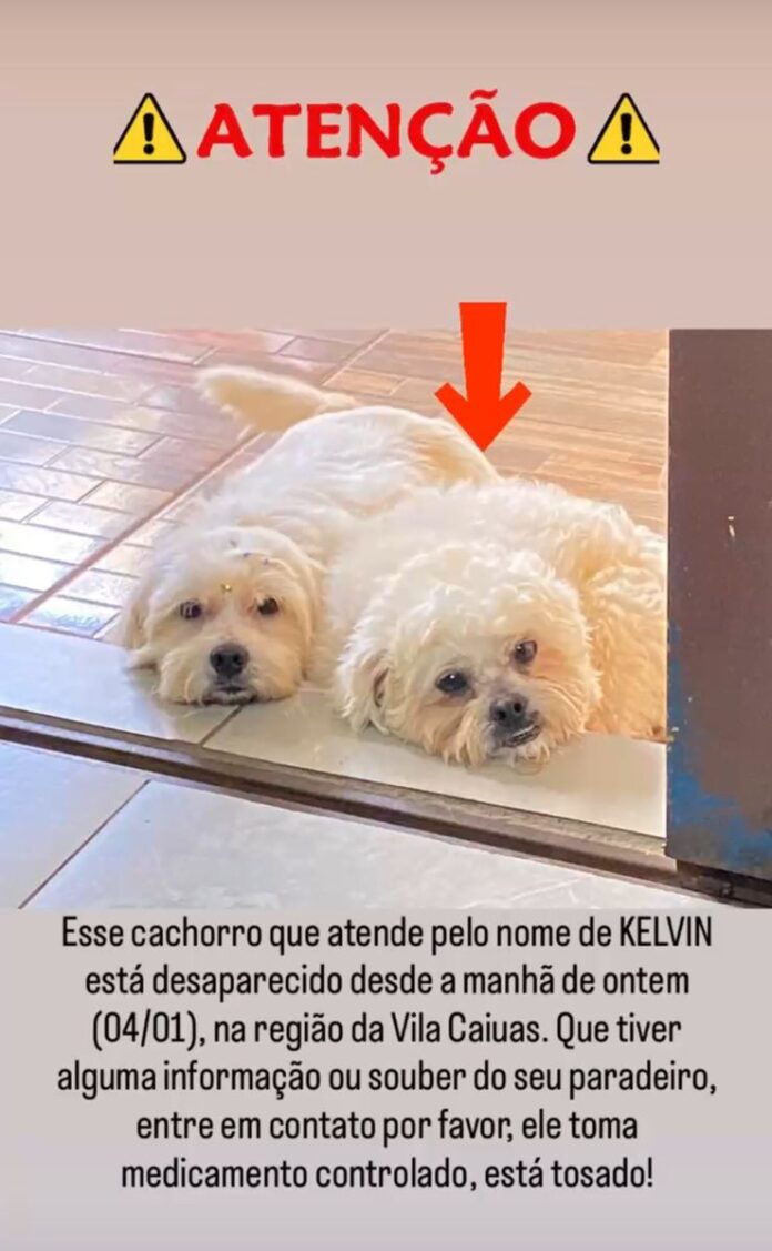 Um cachorro chamado Kelvin está desaparecido em Amambai desde a manhã de domingo, 4 de janeiro. O animal sumiu na região da Vila Caiuás.