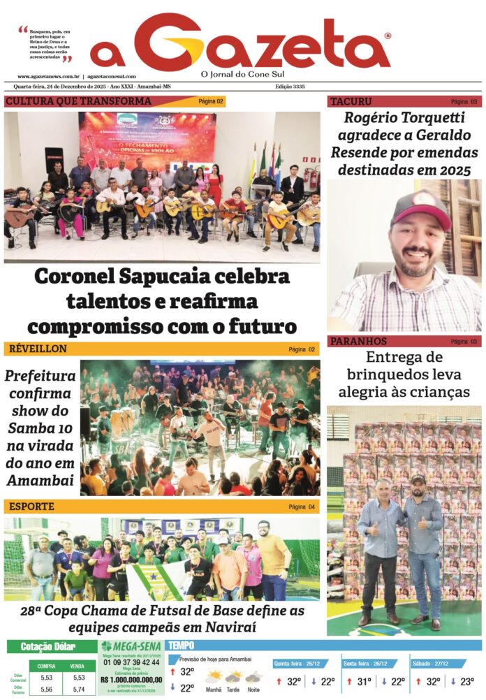 A Administração municipal deseja a todos um Feliz Natal e um próspero Ano Novo, repletos de paz, saúde e esperança.