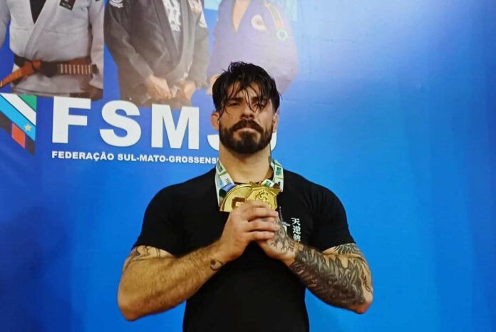 O lutador de Amambai, Leandro Ricardo Ribeiro, campeão na etapa do Estadual de Jiu Jitsu, em Campo Grande. (Foto: Divulgação)