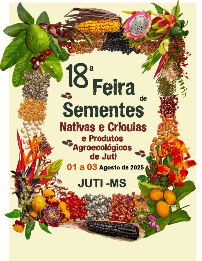O município de Juti, no sul de Mato Grosso do Sul, fica pronto para receber entre os dias 1º e 3 de agosto de 2025 a 18ª edição da tradicional Feira de Sementes Nativas e Crioulas e Produtos Agroecológicos. Em sua nova etapa, o evento propõe fortalecer a conservação das sementes crioulas, reforçando a segurança alimentar e a agroecologia na região.