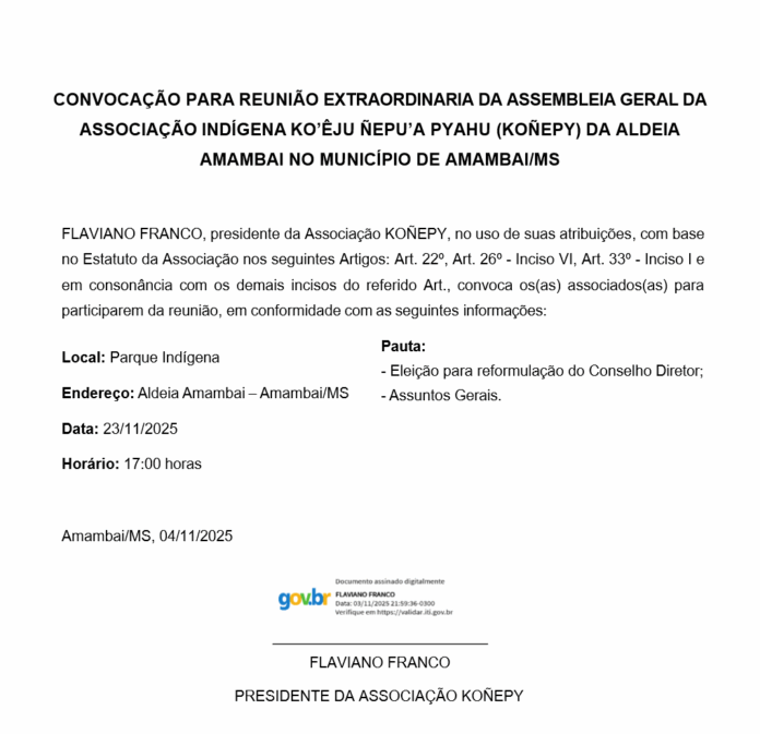 As denúncias foram encaminhadas a parlamentares estaduais e federais, entre eles Renato Câmara, Coronel David, Rodolfo Nogueira e Marcos Pollon, além da senadora Tereza Cristina, Prefeitura de Iguatemi, Assembleia Legislativa, e à Funai/CLT do município.