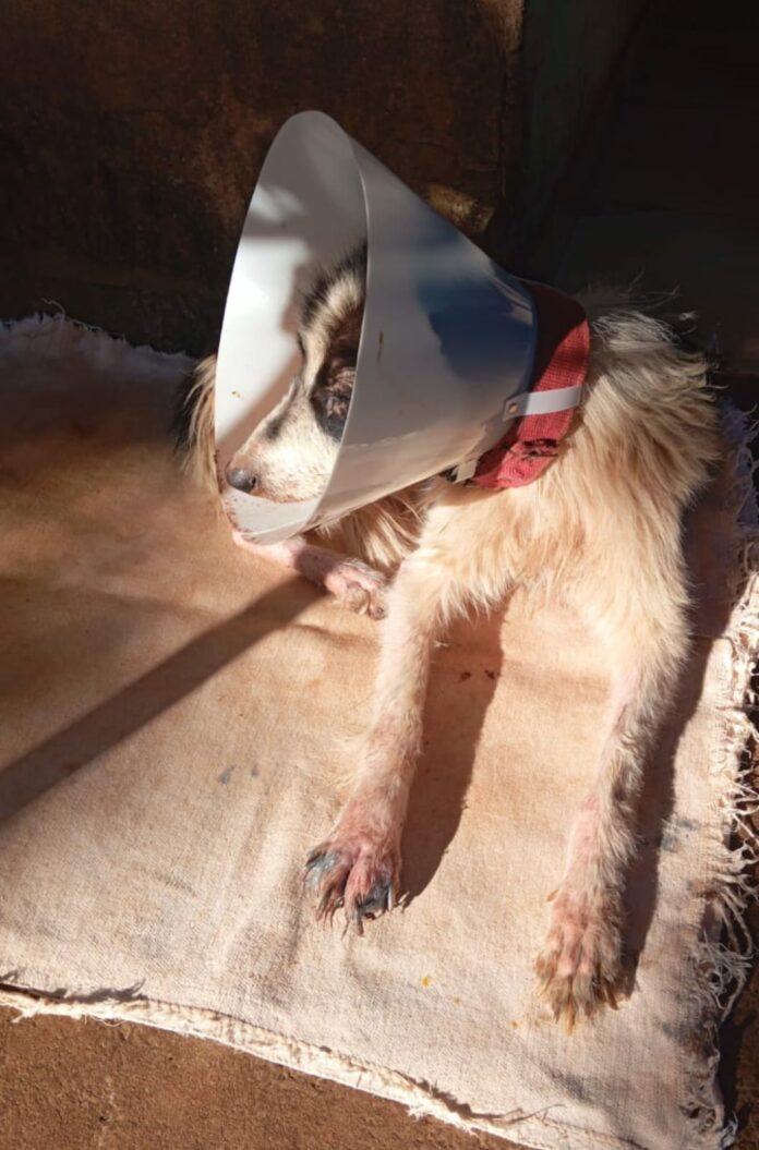 O animal foi visto pela última vez por volta das 7h, em frente à escola. Ele está debilitado e usa um cone, pois está em tratamento de saúde. Segundo informações, ele conseguiu abrir o portão do lar temporário com o focinho e fugir do local.