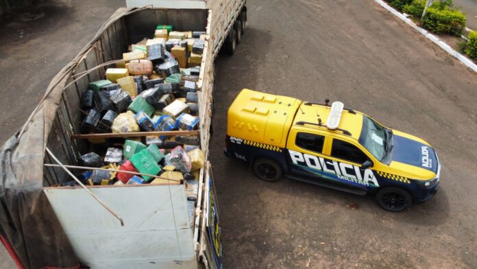 No âmbito da Operação Protetor, na manhã desta sexta-feira (17/10), por volta das 07h30min, a equipe da Polícia Militar Rodoviária de Amambai realizava fiscalização na MS-386, KM 63, trecho Amambai/Ponta Porã, quando abordou um conjunto de caminhão-trator Mercedes-Benz acoplado a dois semirreboques.